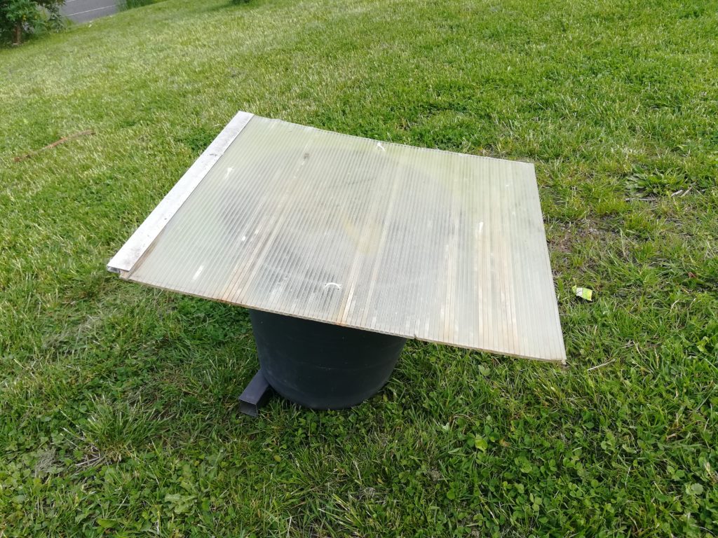 Heute habe ich mir einen Sonnenwachsschmelzer gebaut. Ein Sonnenwachsschmelzer ist nichts anderes als ein dunkles Gefäß mit einer Glasplatte obendrauf. Hierein werden alte, nicht mehr zu benutzende Waben und Wachs welcher bei der Honigernte anfällt gelegt und mithilfe von Sonnenlicht und vor allem Sonnenwärme eingeschmolzen und in meinem Fall auch vorgefiltert, sodass ich mir das mühsame Wachsschmelzen in einem Topf über Feuer sparen kann. Da in unserer kleinen Imkerei nicht genügend Wachs anfällt um andere Methoden des Wachsschmelzens sinnvoll nutzen zu können, habe ich mich für einen kleinen Wachsschmelzer Marke Eigenbau entschieden.