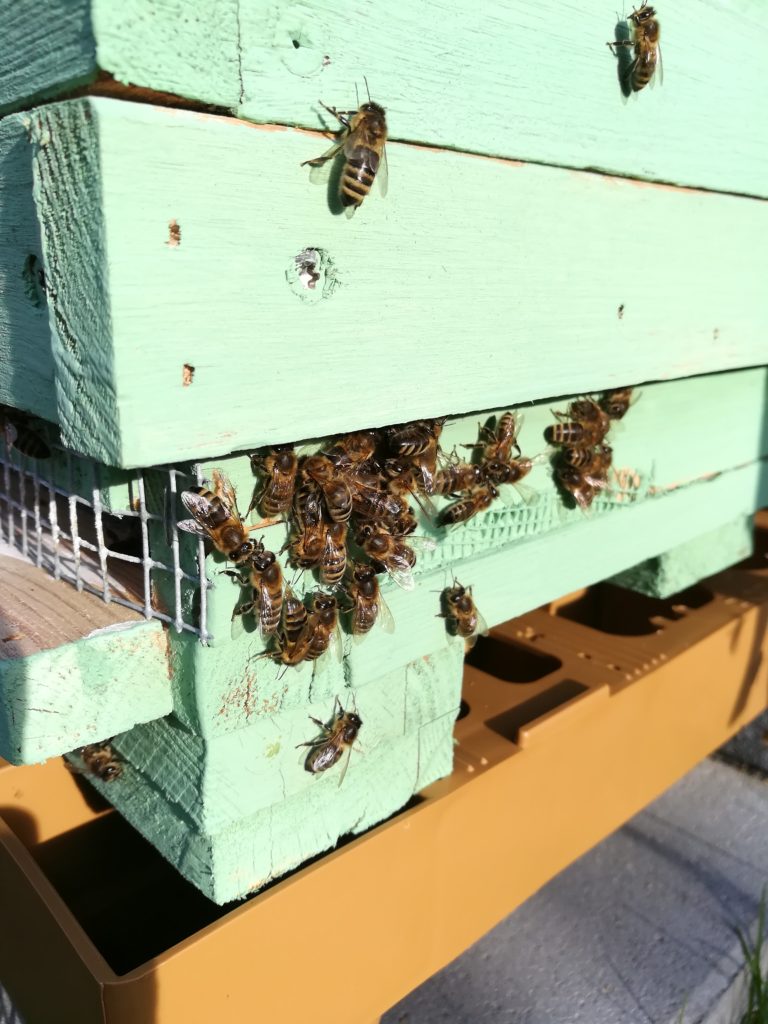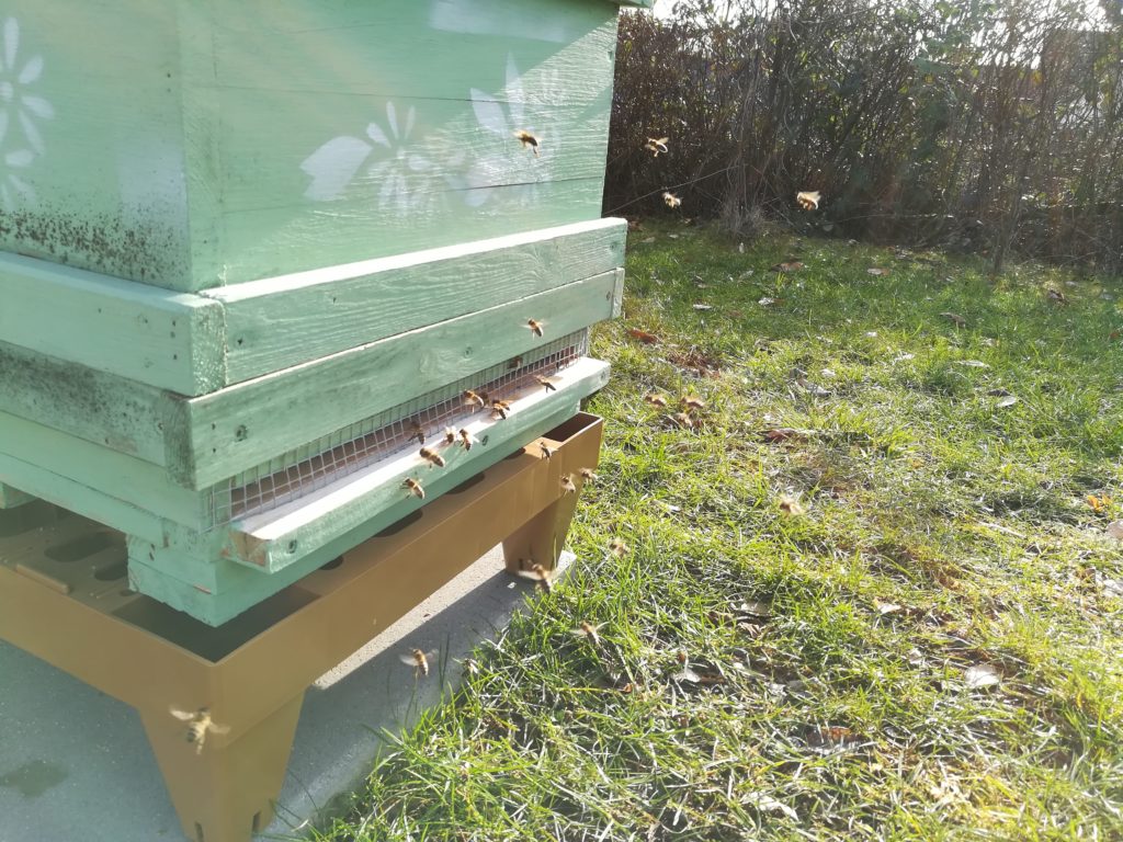 Da ist dann natürlich einiges los am Bienenstock denn aktuell haben wir noch ca. 10.000 Bienen an unserem Bienenstand.